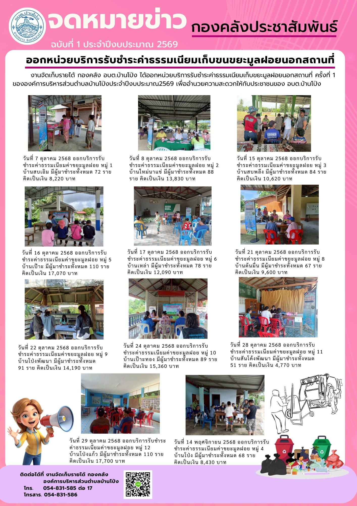 การออกหน่วยบริการรับชำระค่าธรรมเนียมเก็บขนขยะมูลฝอยนอกสถานที่ ประจำปีงบประมาณ 2569